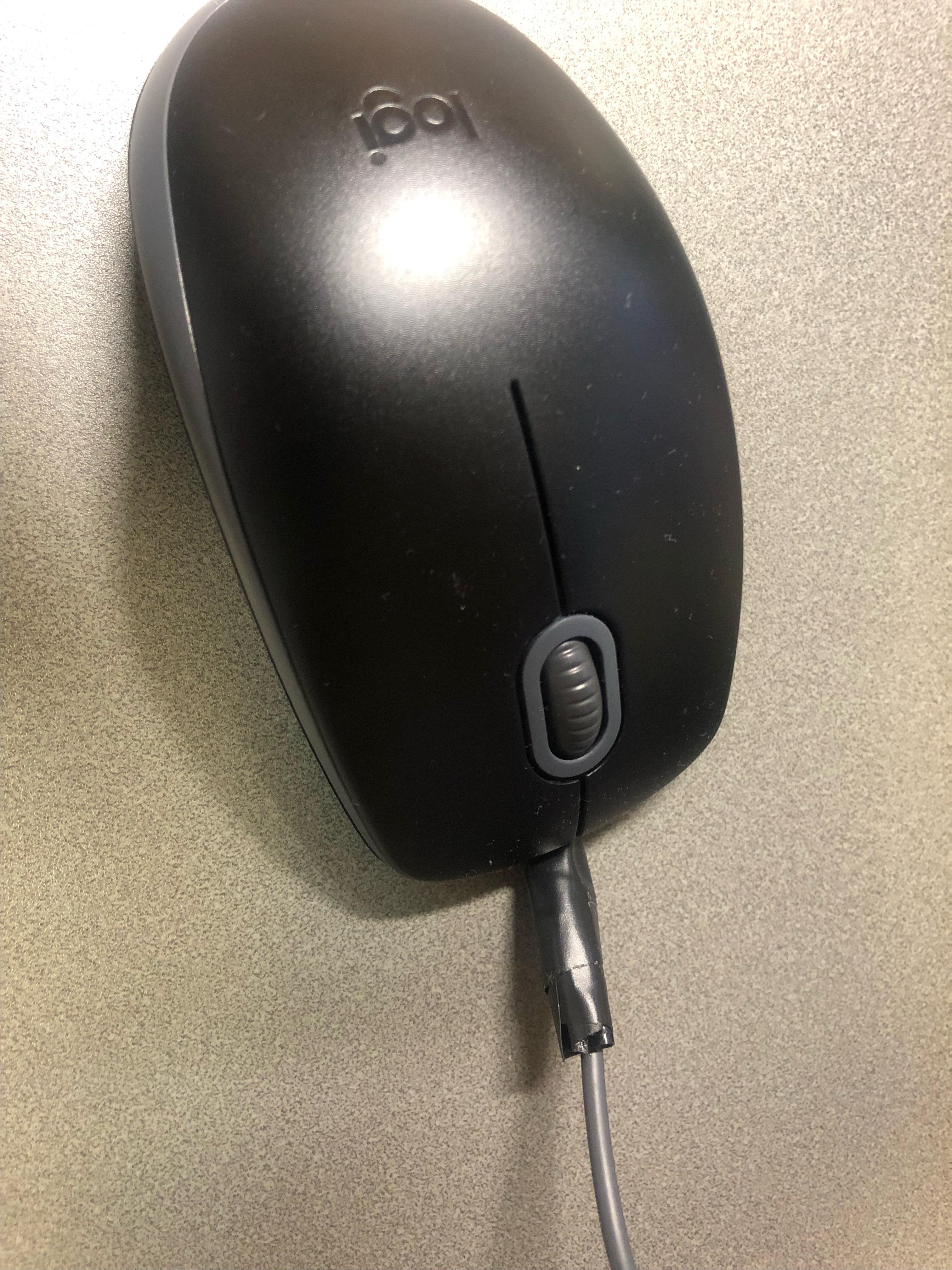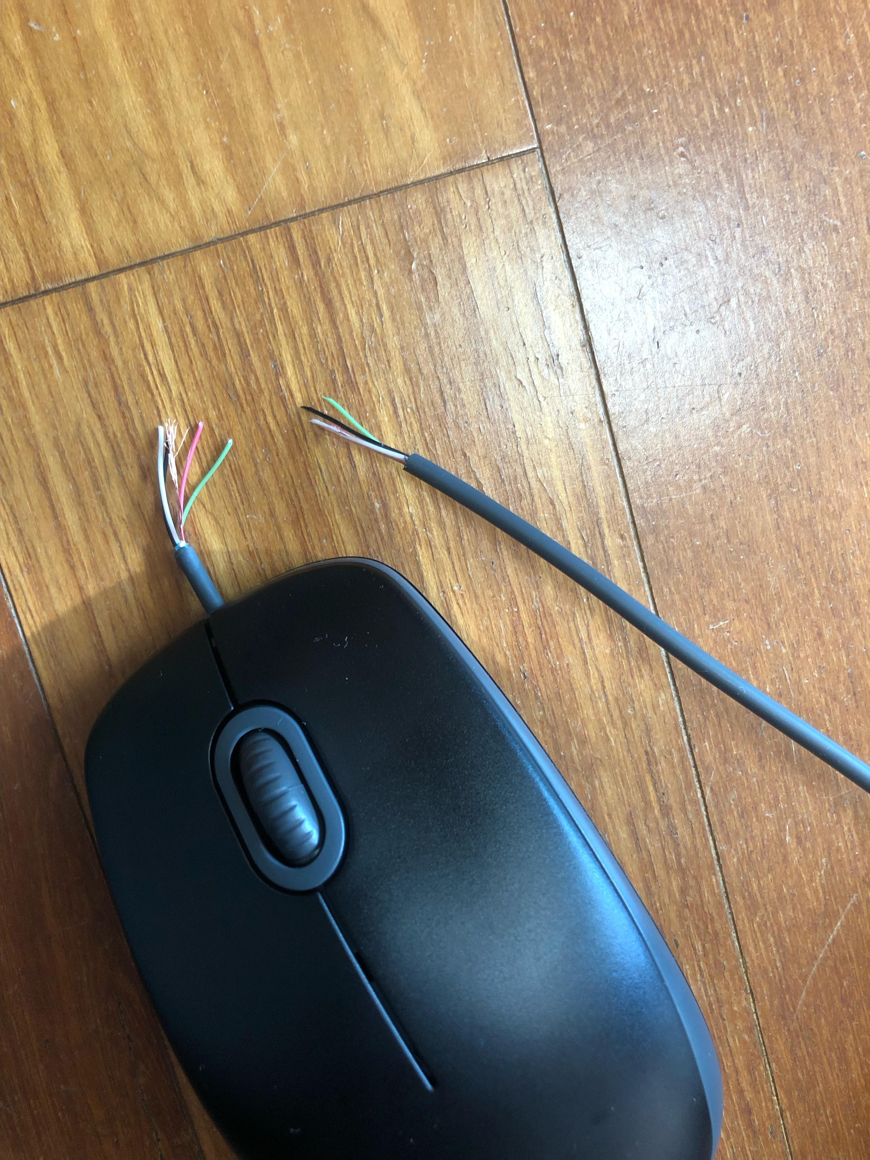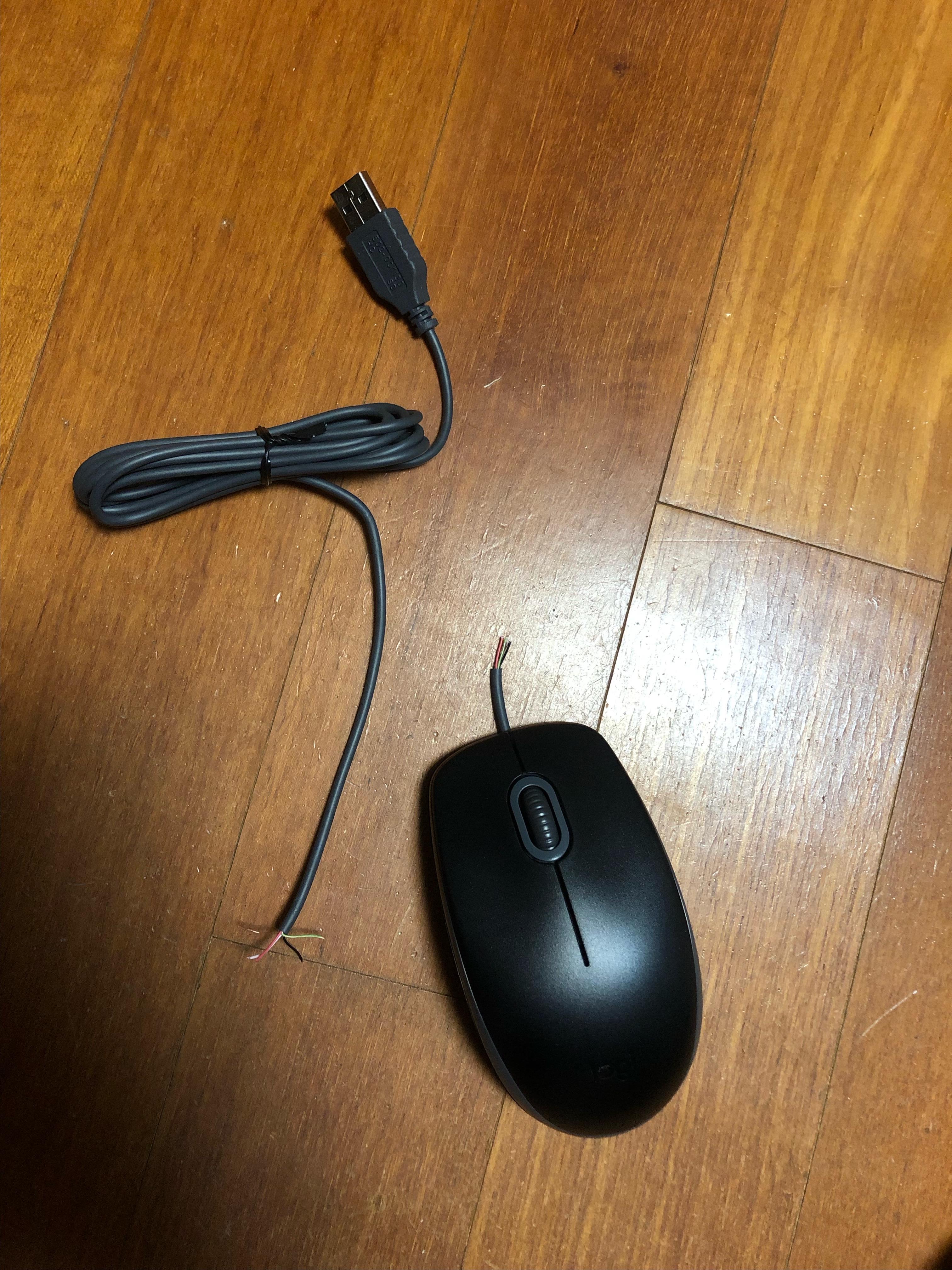 가위를 사용해서 플라스틱 통을 열었는데, 웬걸.. 마우스 선도 같이 잘라버렸다.