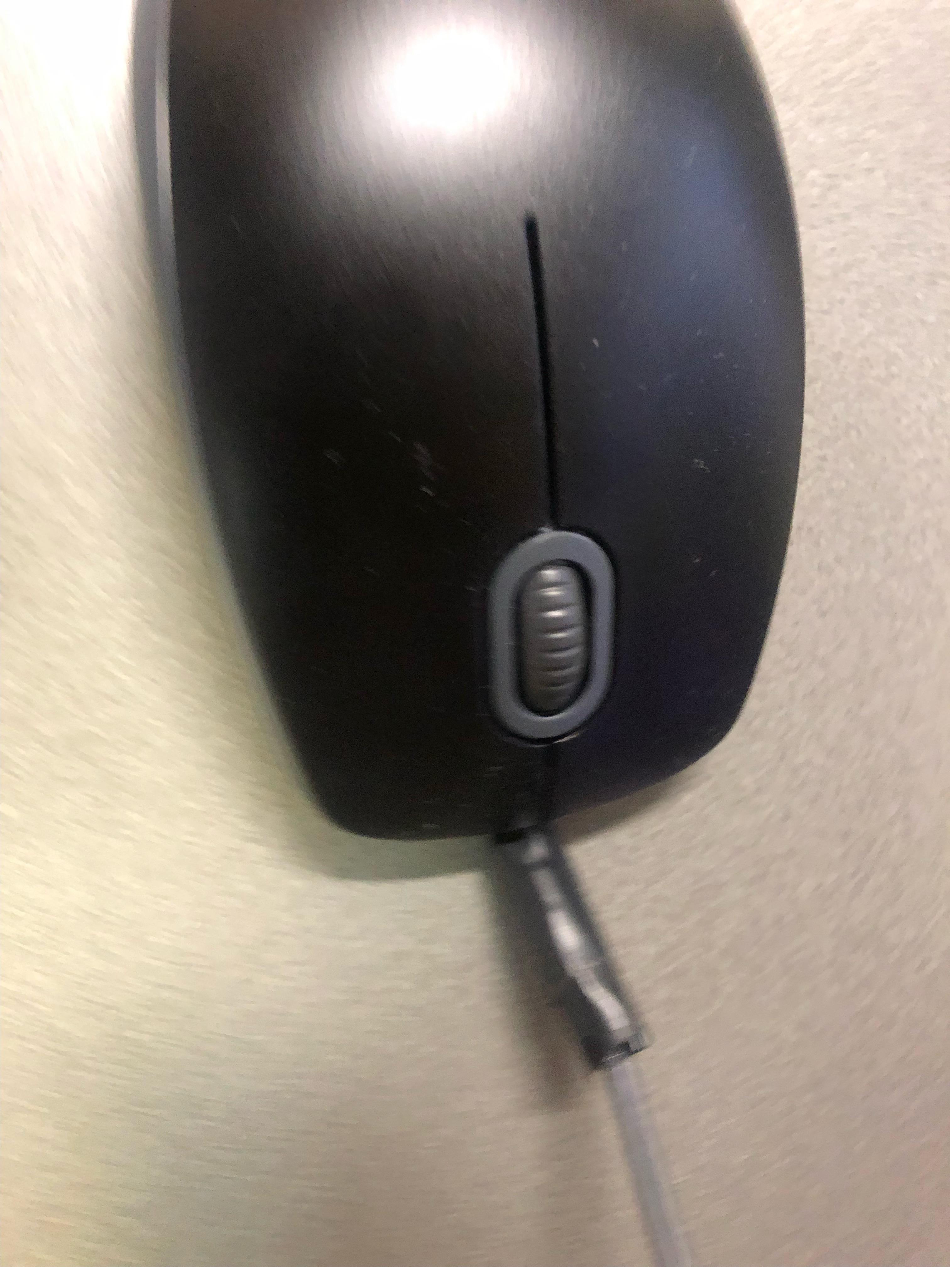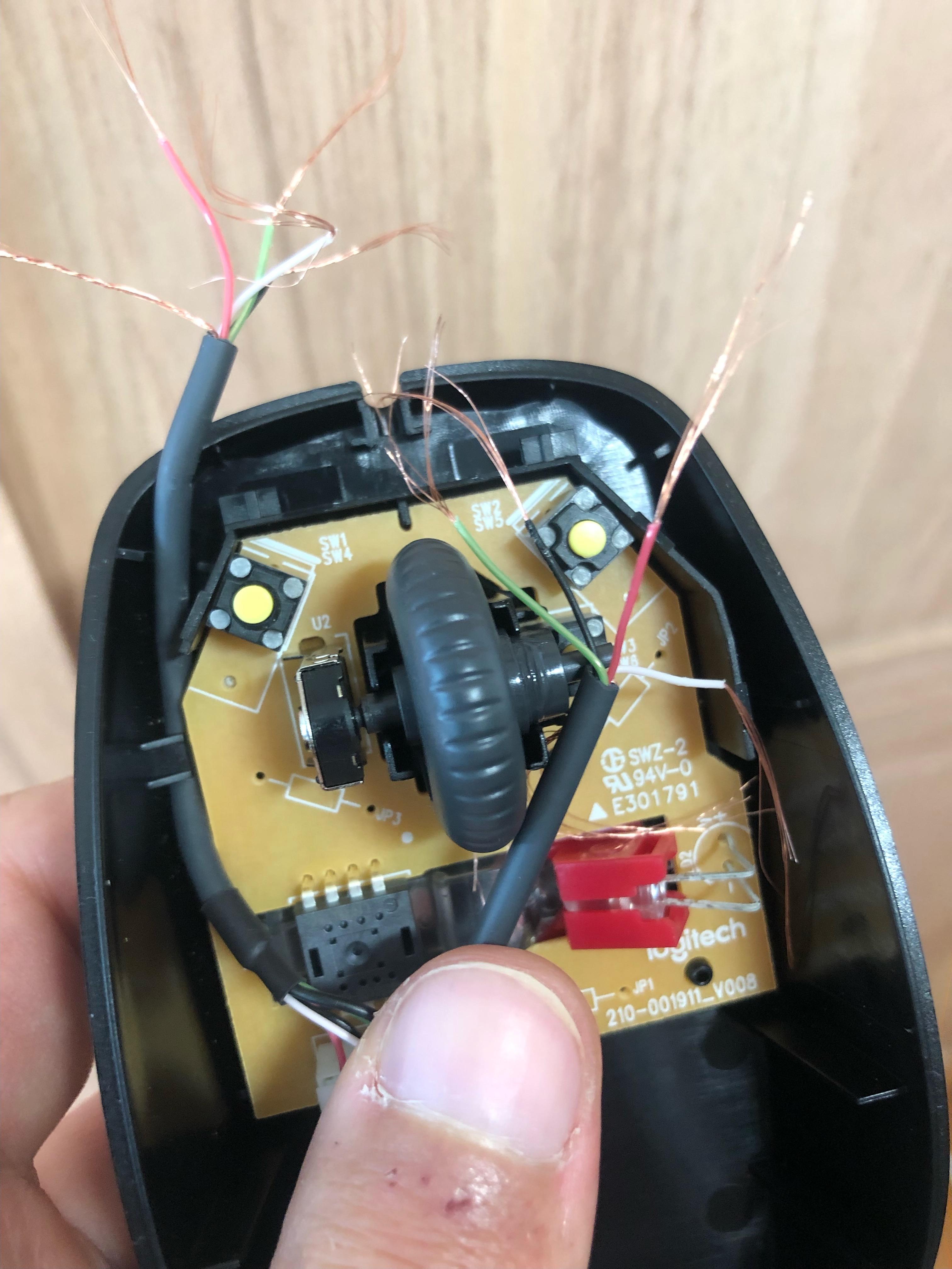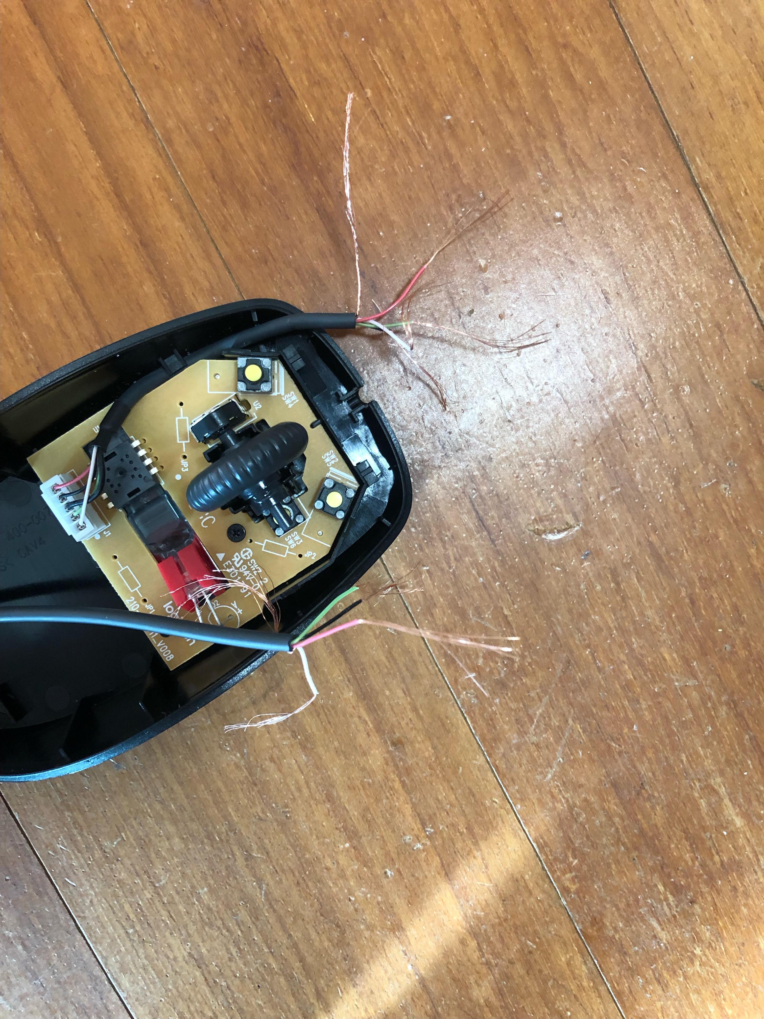 가위를 사용해서 플라스틱 통을 열었는데, 웬걸.. 마우스 선도 같이 잘라버렸다.