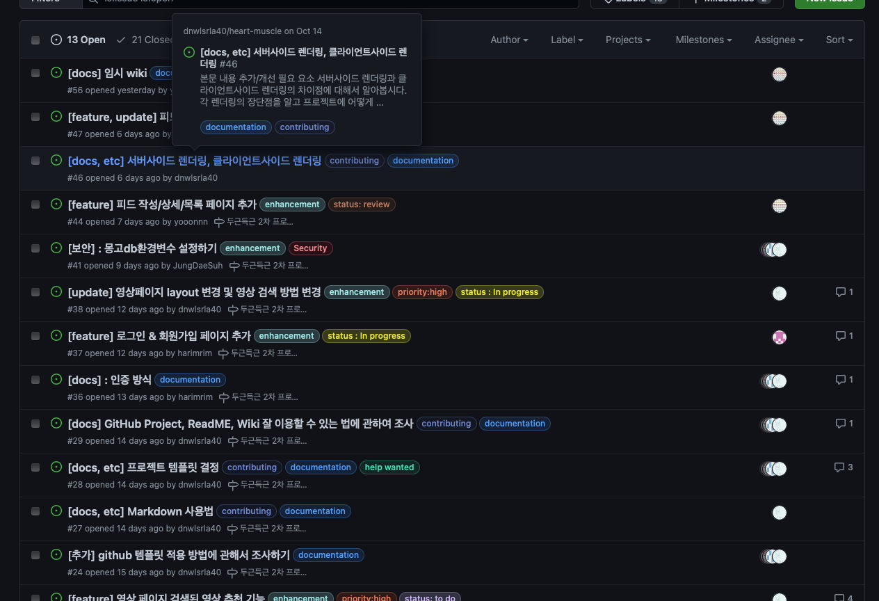 - 1차와 비교해서 issue, pull request 등 많이 늘었다. 그럼에도 불구하고 아직 version control에 대해서 덜 숙달 되어서 새로운 기능 구현할 때 코드가 엉킬까봐 새로운 폴더를 만들어서 코드를 작성했다. 깃에 대해서 조금 더 공부가 필요하다.
