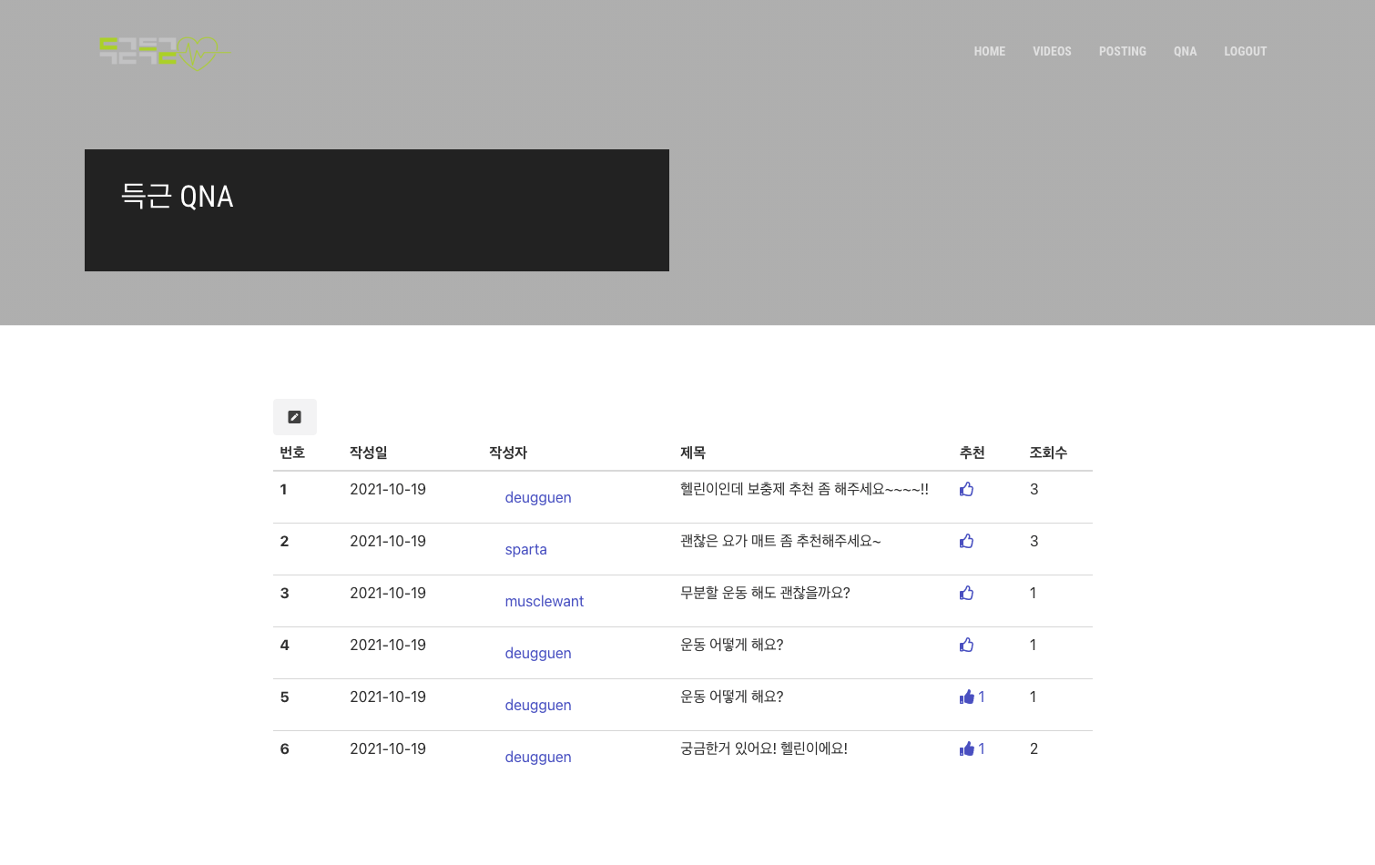 영상 뿐 아니라 사람들이 운동하고 기록을 남기고 또 다른 사람들에게 인증 및 자랑할 수 있는 공간인 "득근피드"를 만들었다. 그리고 궁금한 것을 다른 회원들에게 질문할 수 있는 득근QnA도 만들었다.