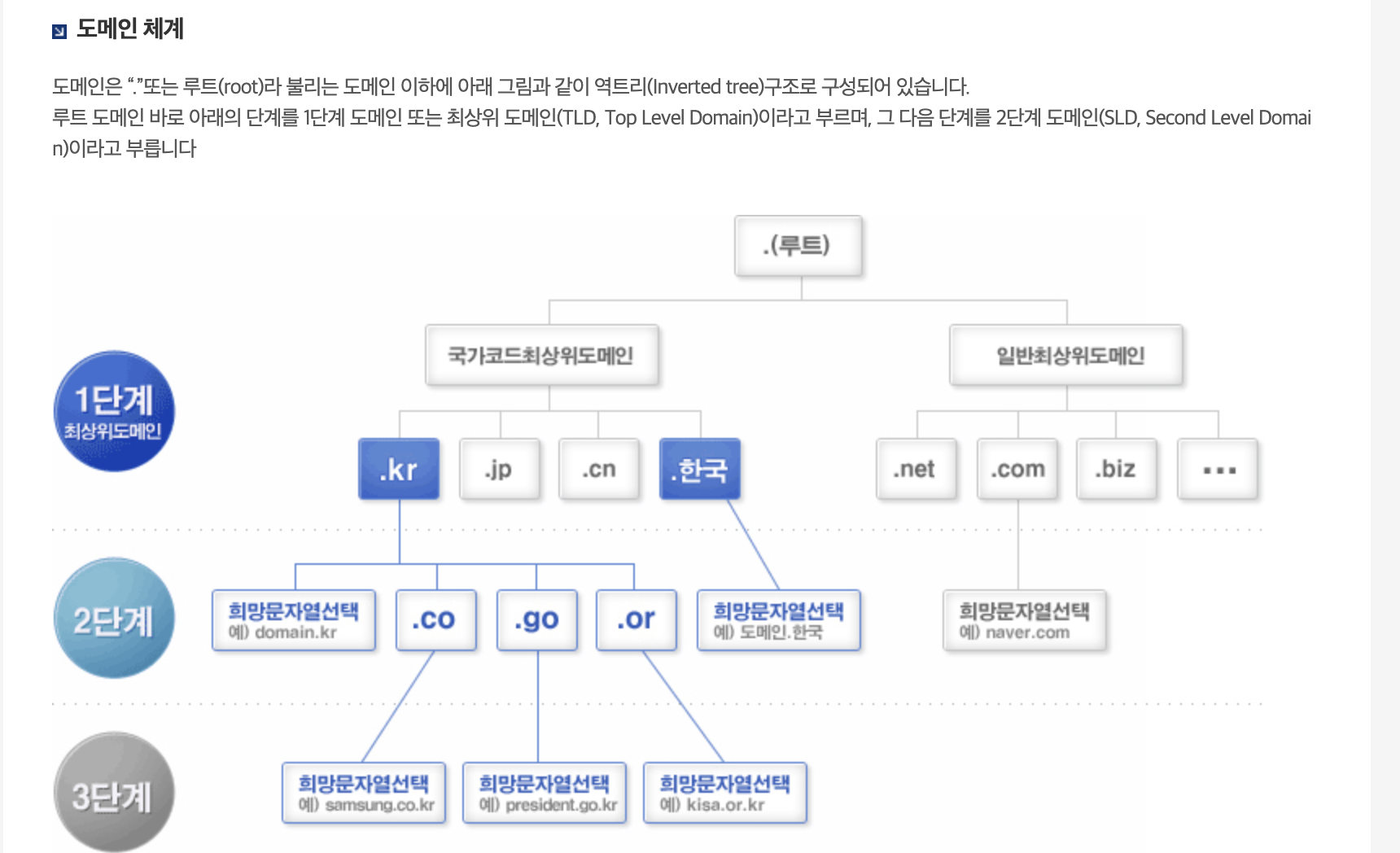 실제 웹사이트의 주소는 IP주소로 되어있음. 255.255.255.255. 사람이 이를 기억하기 힘들기 때문에 도메인 네임을 붙임.