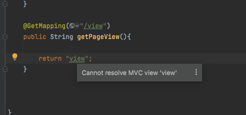 "view" 마우스를 대니 "Cannot resolve MVC view"라고 뜬다.