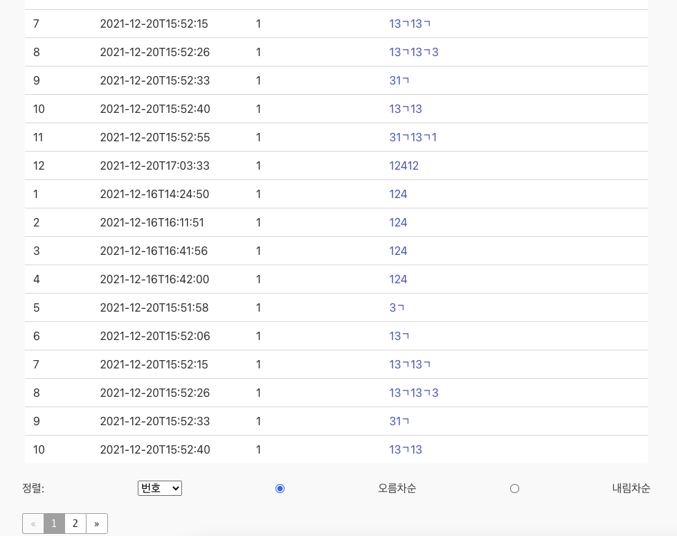 문제는 페이지 2를 누르면 페이지 2만 나오는게 아니라, 페이지 1 목록에 페이지 2목록이 추가 되어서 나온다. 그리고 다시 페이지 1을 누르면 또 페이지 2에 페이지 1이 추가 되어서 나온다.